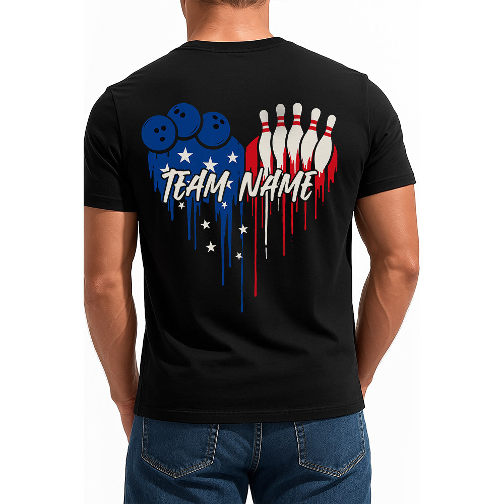 Custom Bowling T-Shirts For Men, Dripping American Flag Heart Patriotic Design IPHW9070