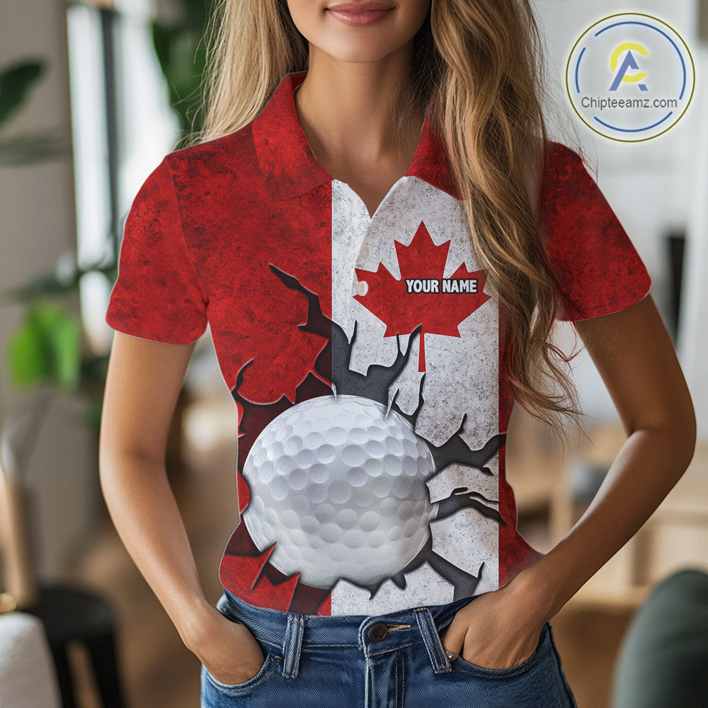 Vintage Canadian Flag broken golf ball Women Golf polo shirts Custom patriotic Golf attire For ladies NQS10050