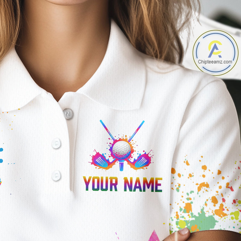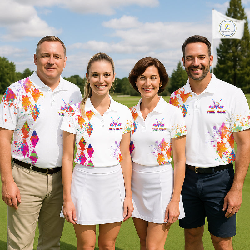 Watercolor Argyle Pattern Womens Golf Polo Shirt Custom White Golf Clubs Golf Shirts For Ladies NHN0006