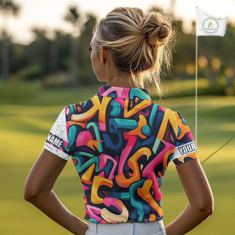 Women golf polo shirts colorful pattern custom team golf shirts, golf tops for ladies NQS10088