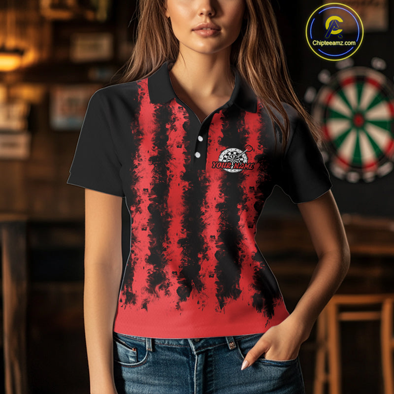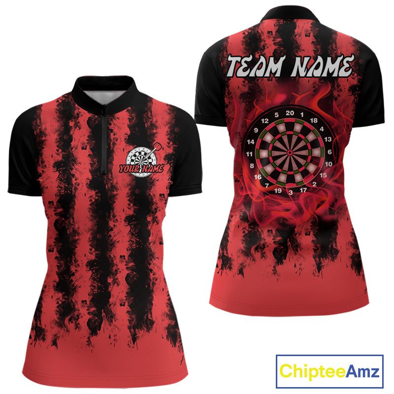 Red Flames Arround Dartboards Custom Dart Shirt For Women, Dart Team Jerseys NYN0236