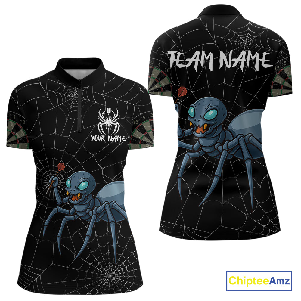 Gray Spider Webs Pattern Custom Aqua Blue Spider Dart Shirt For Women, Dart Jerseys NYN0245