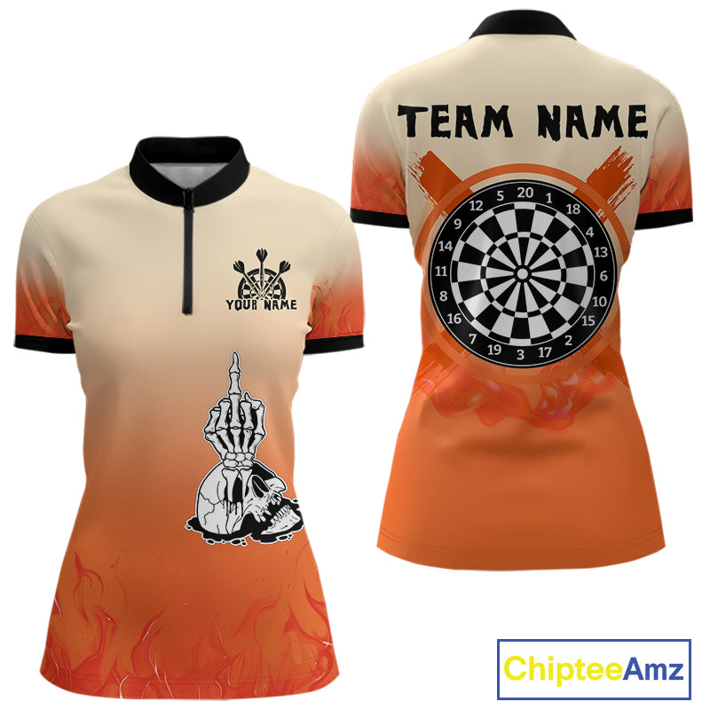 Women's Custom Dart Shirt With Skeleton Middle Finger Skull And Fiery Orange NYN0257