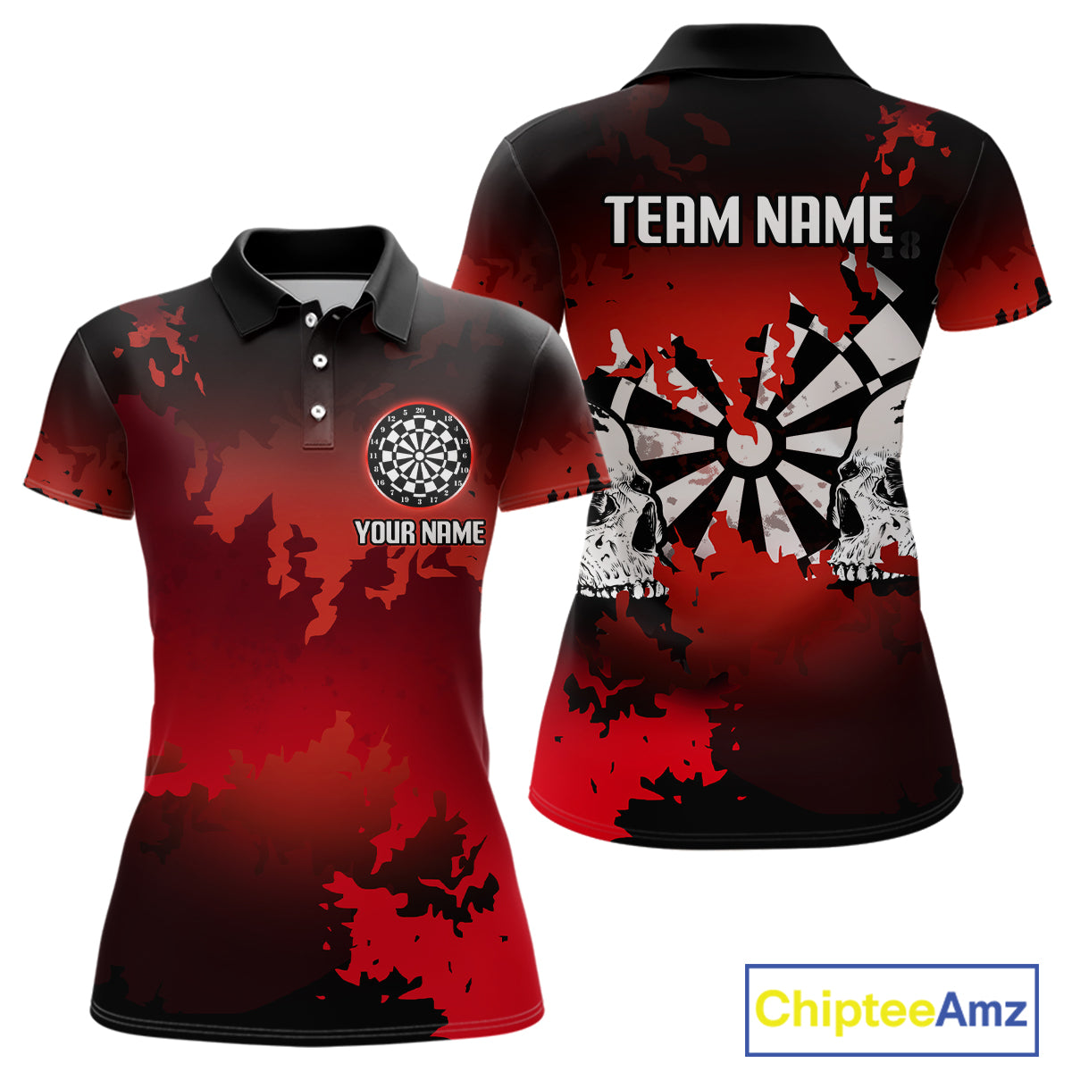 Women's Custom Darts Shirt With Grunge Red Camo Broken Dartboard & Skull Art NYN0269