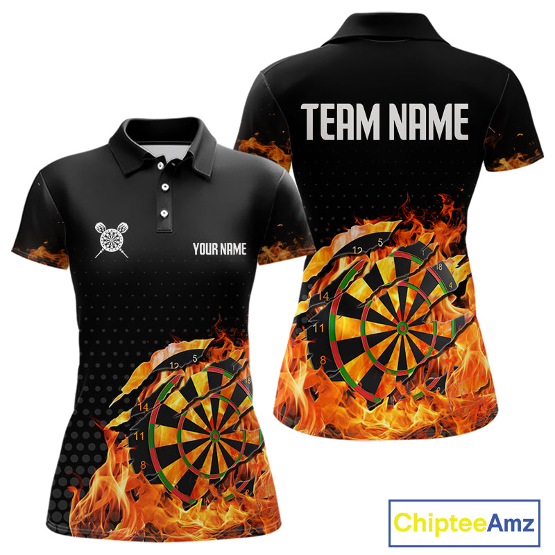 Women's Custom Darts Shirt With Cracked Flame Dartboard And Halftone Pattern NYN0270