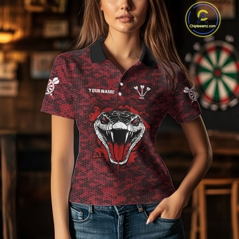 Women’s Darts Team Shirt Featuring Fierce Scarlet Cobra Head Snakeskin Pattern NYN0279