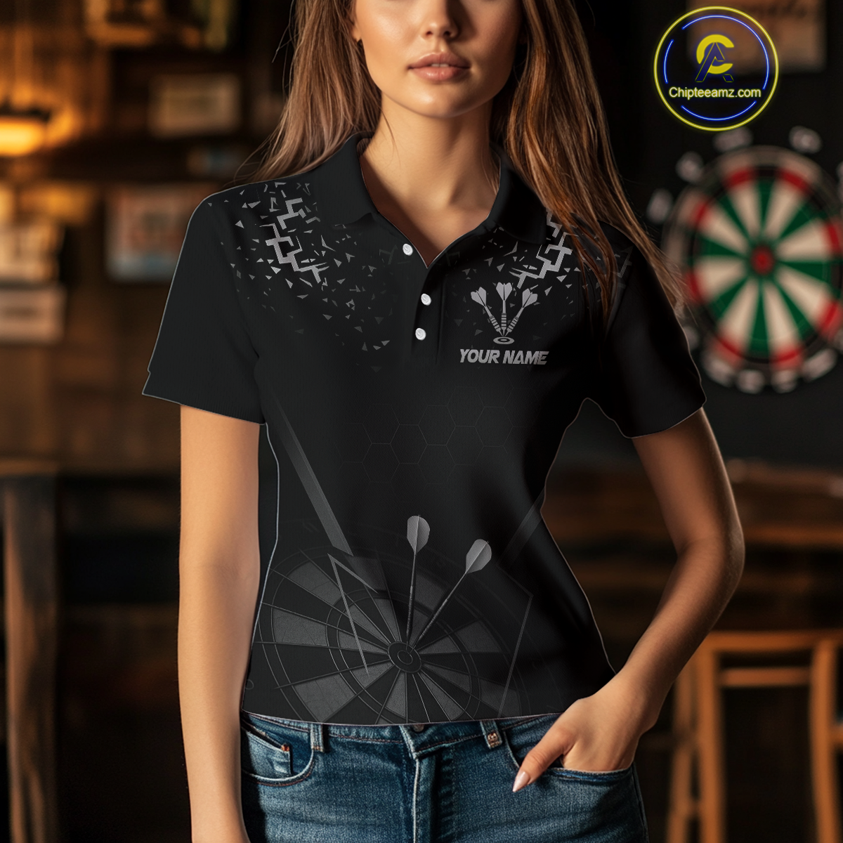 Personalized Dart Shirt For Women With Black Dartboard And Silver Darts Arrows NYN0281