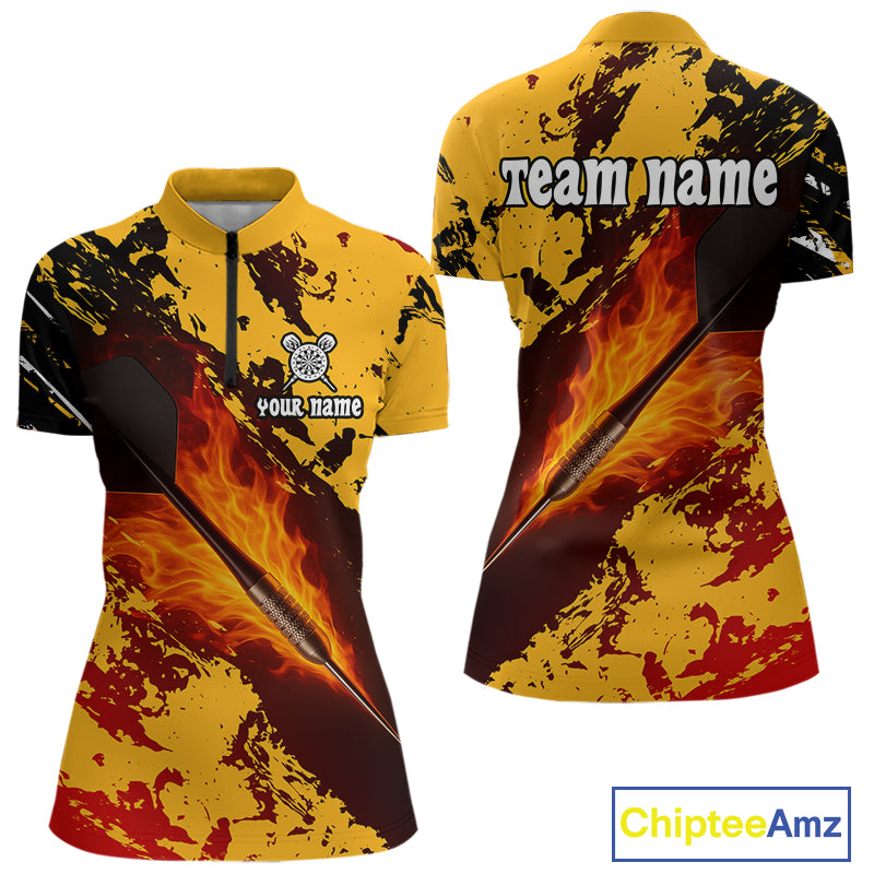 Women's Custom Darts Shirt With Flame Dart Arrows And Black-Yellow Grunge Pattern NYN0290