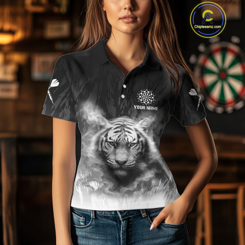 Women's Custom Darts Shirt With Pale Smoke Tiger Grunnge Pattern Dartboard NYN0296