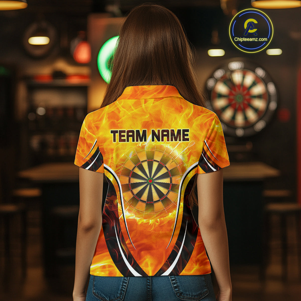 Women's Custom Darts Team Shirts With Explosive Flame Dartboard And Geometric Shapes NYN0298