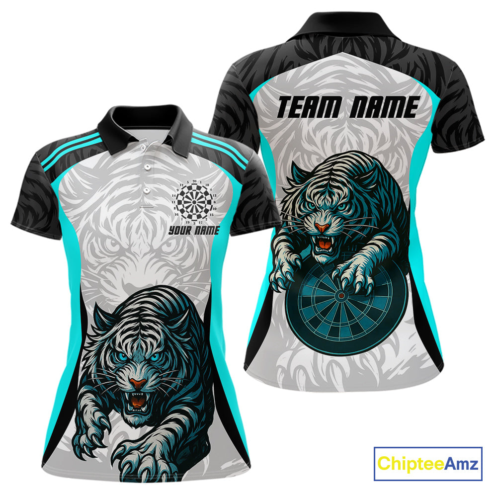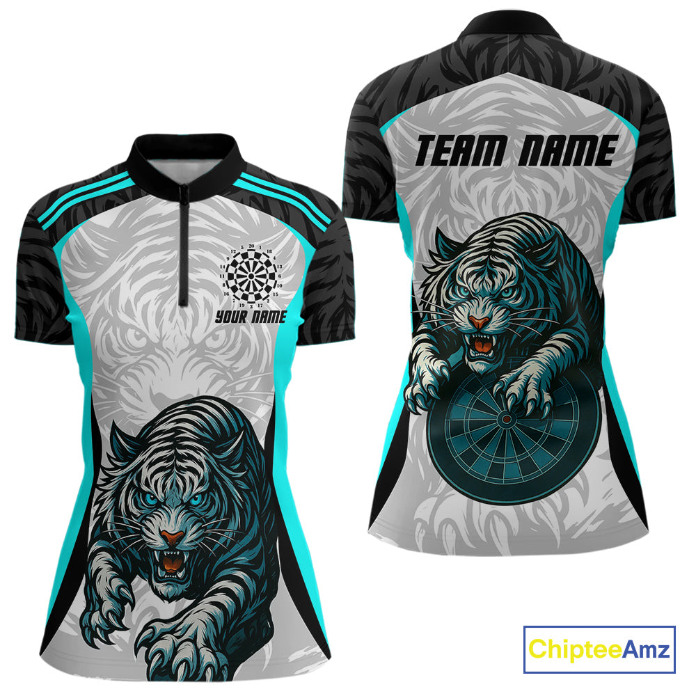 Women’s Darts Team Shirt Turquoise Tiger And Dartboard With Name Option NYN0307