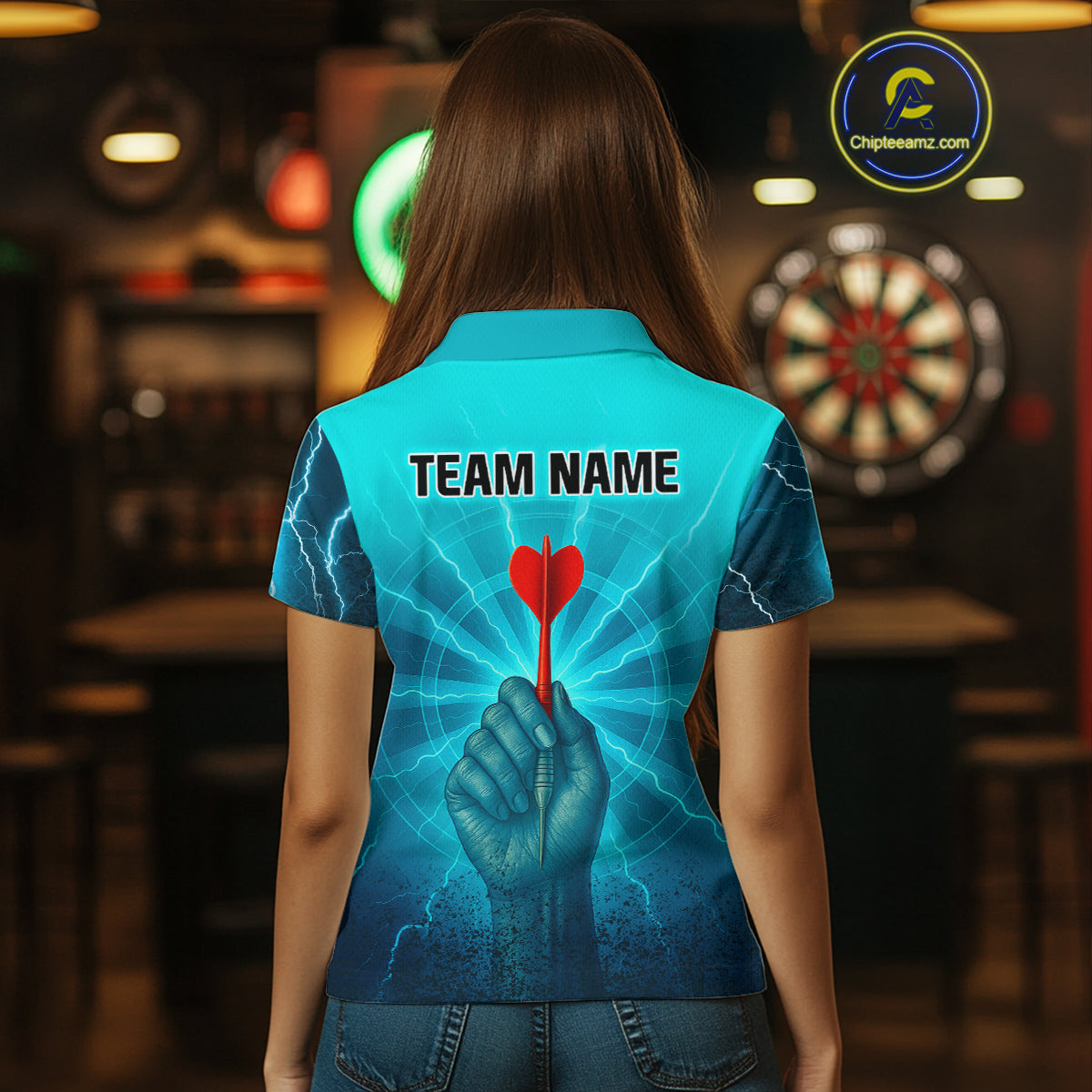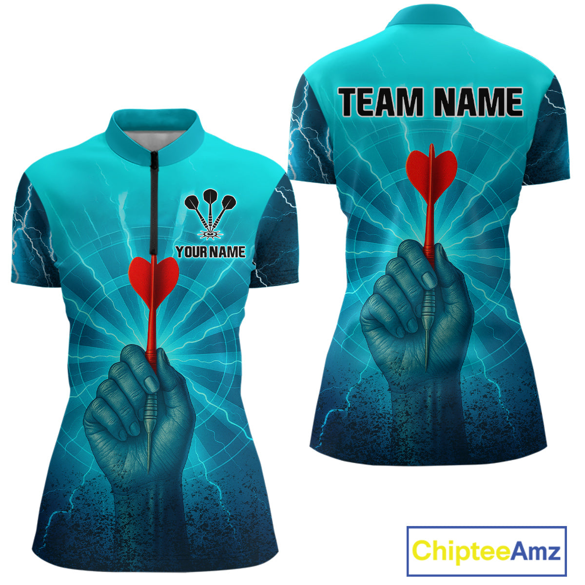 Women’s Custom Darts Shirt - Turquoise Lightning Fist With Maroon Dart Arrow NYN0316