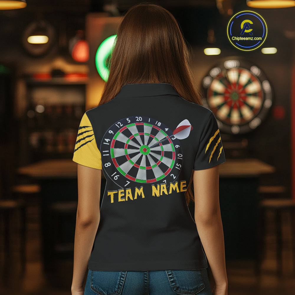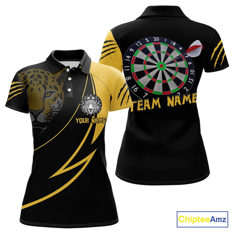 Women's Custom Darts Shirt - Yellow Panther With Dartboard & Arrow | Personalized Name NYN0323
