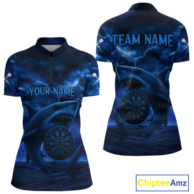 Women's Custom Darts Shirt - Cobalt Lightning Shark In Ocean With Dartboard And Arrow NYN0330