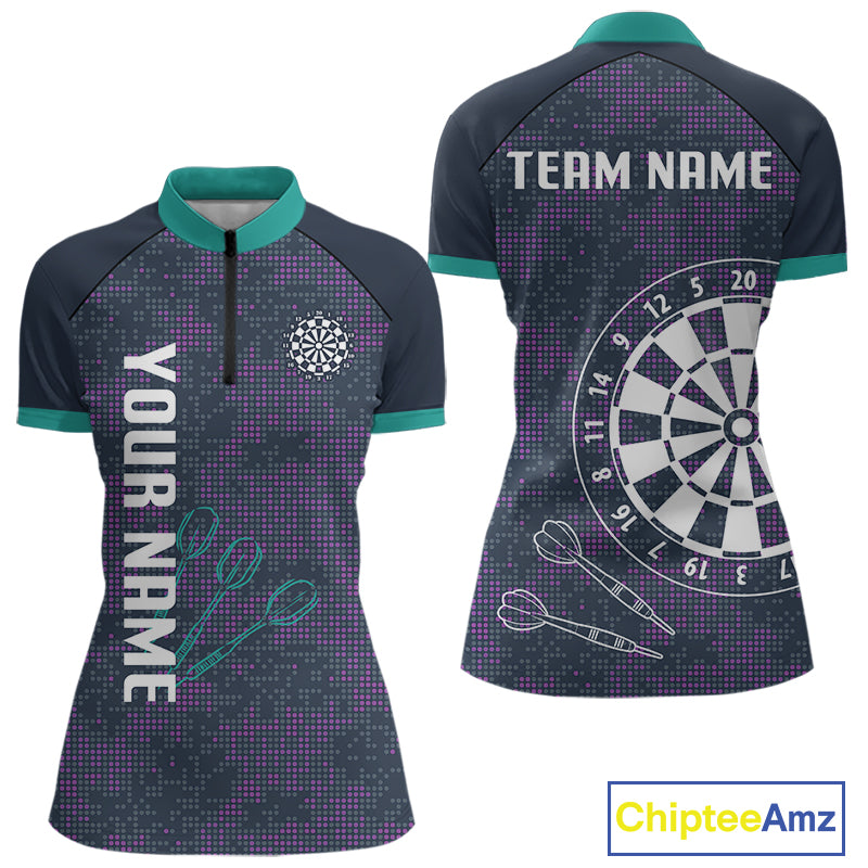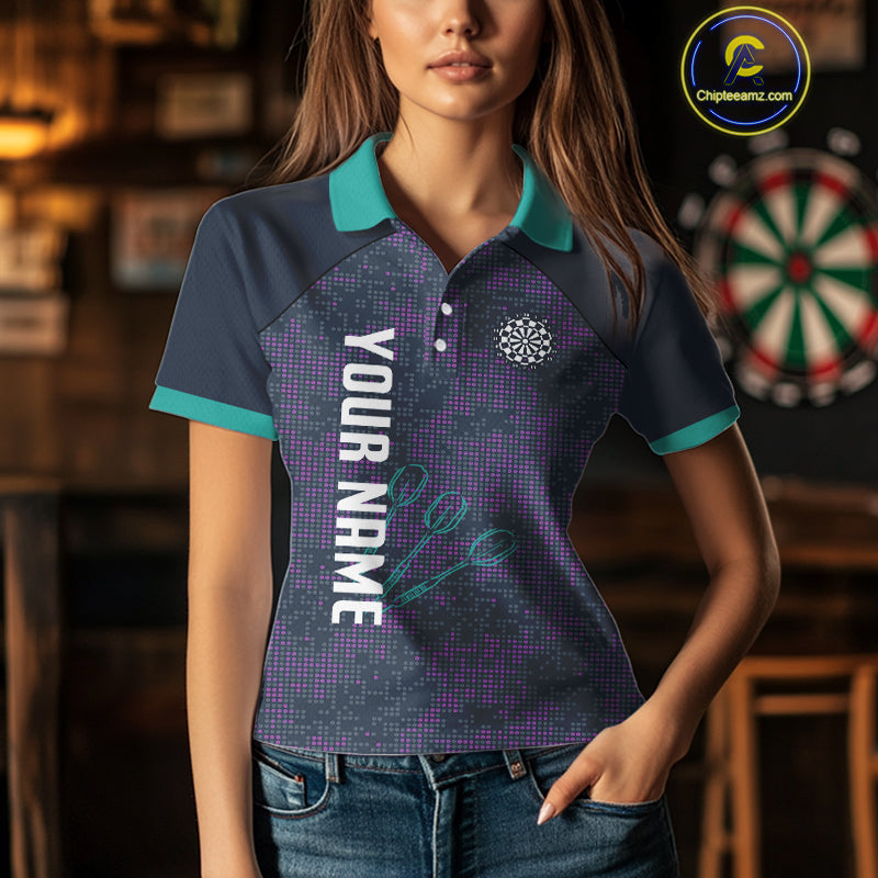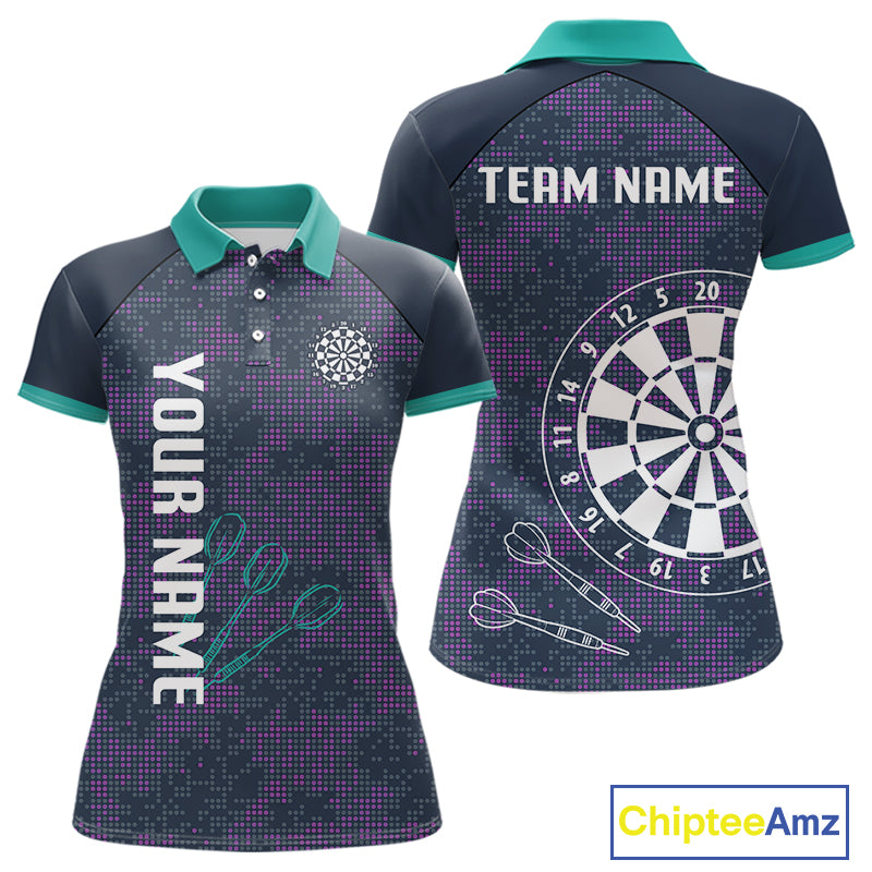 Purple Darts Shirt For Women With Dartboard And Arrows - Custom Team & Player Name NYN0343