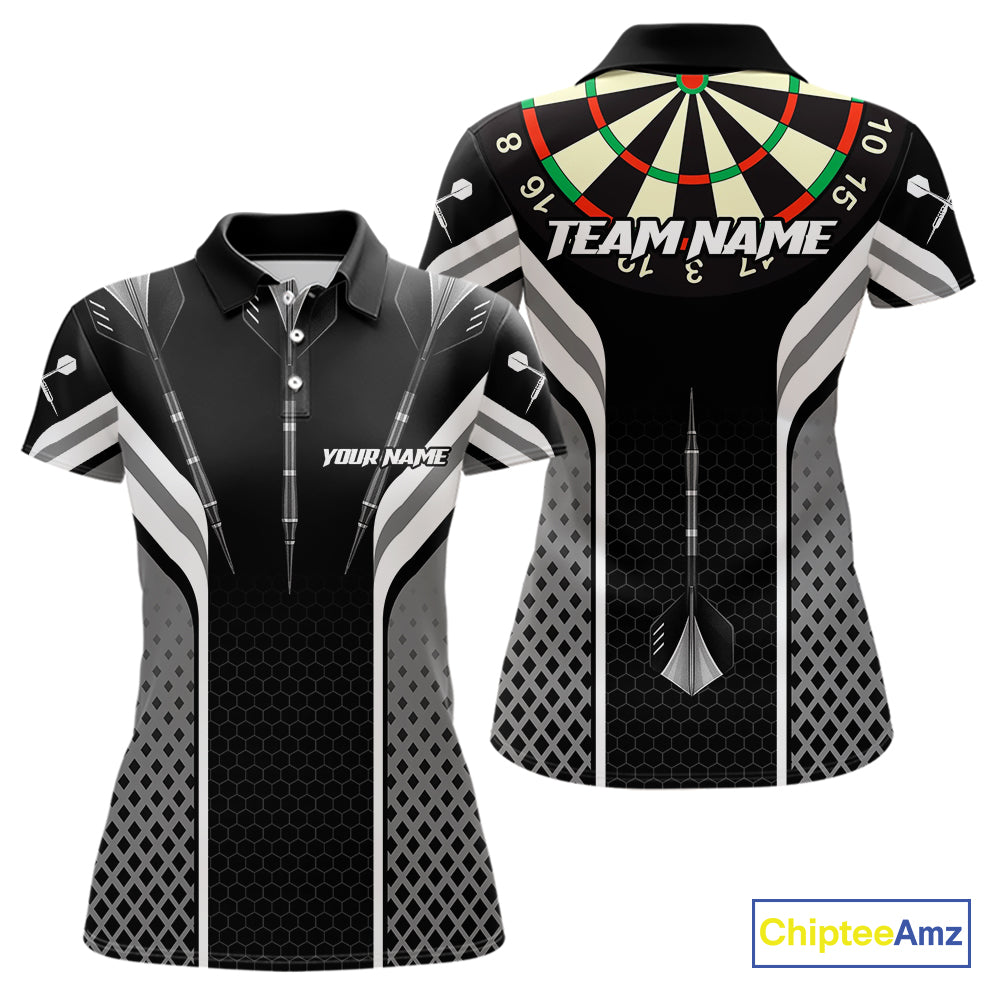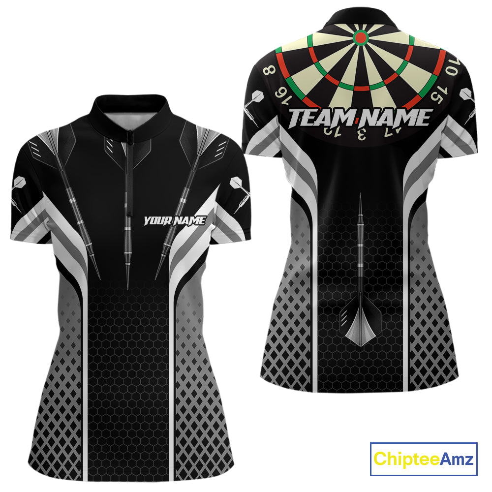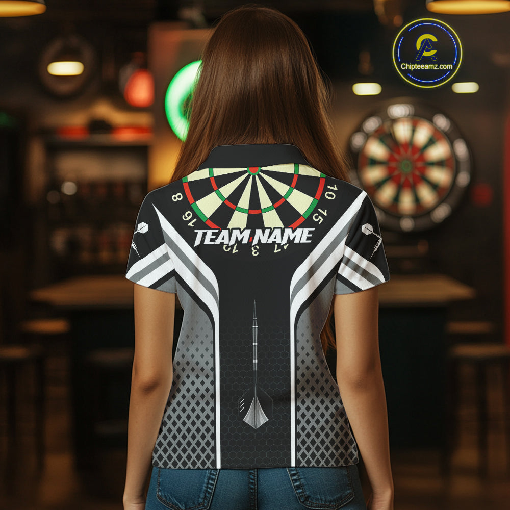 Black Darts Arrow Hit The Bullseye Darts Shirt For Women - Custom Team & Player Name NYN0361