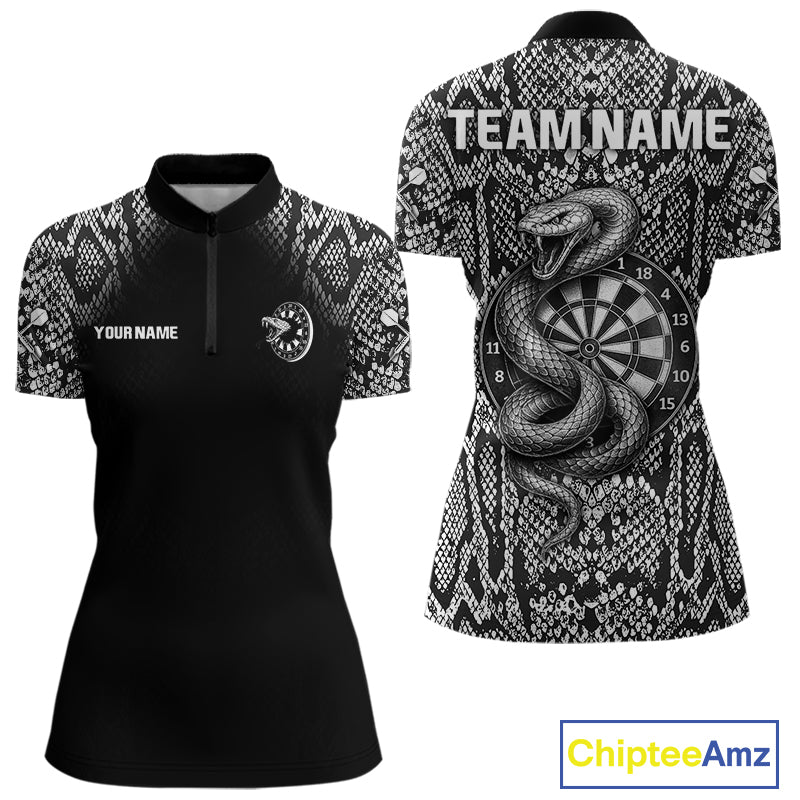 Grey Snake & Reptile Skin With Striking Dartboard Darts Shirt For Women - Custom Team Name NYN0374