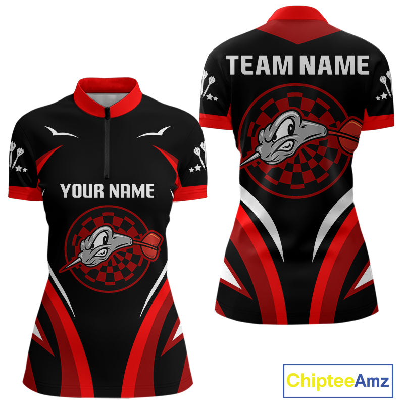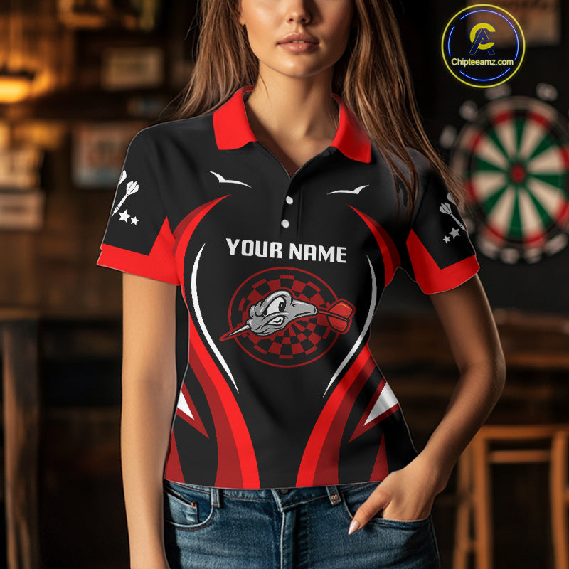 Red Darts Arrow & Dartboard Funny Darts Shirt For Women - Custom Team & Player Name NYN0378