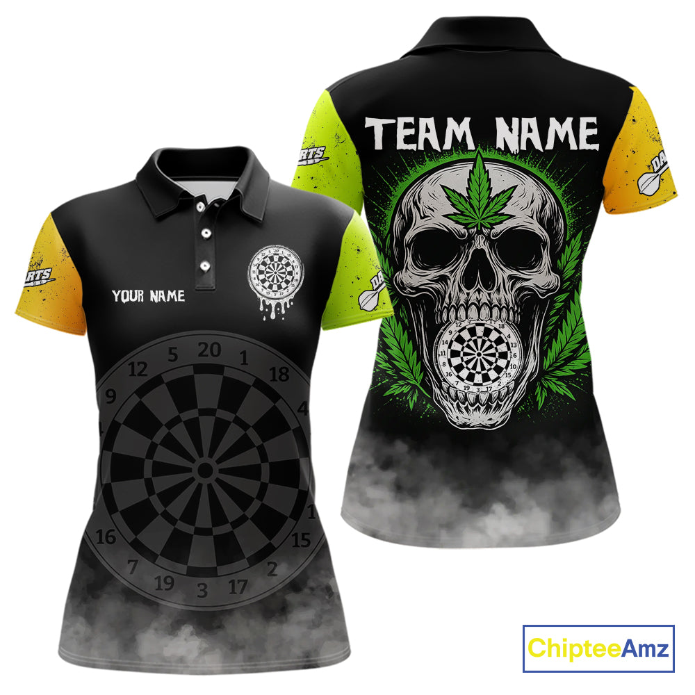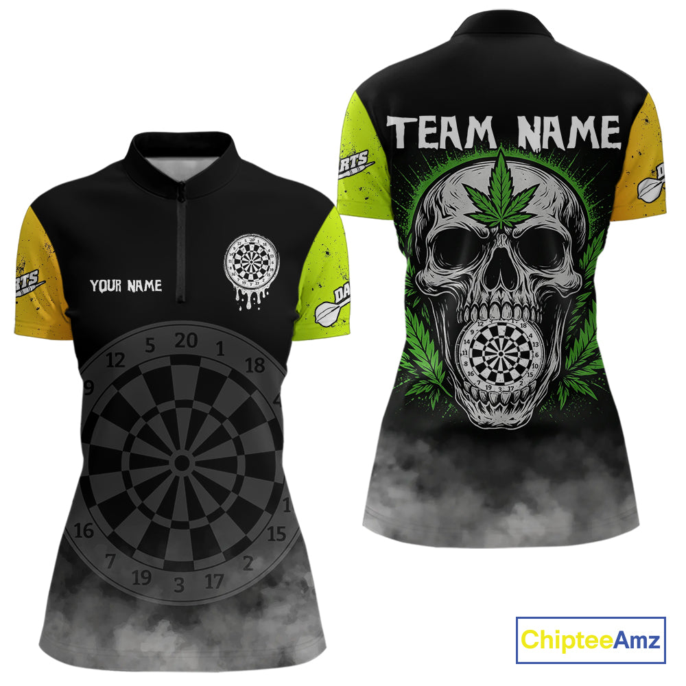 Lime Leaves Skull & Dartboard, Colorful Darts Shirt For Women - Customizable Name NYN0385