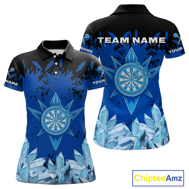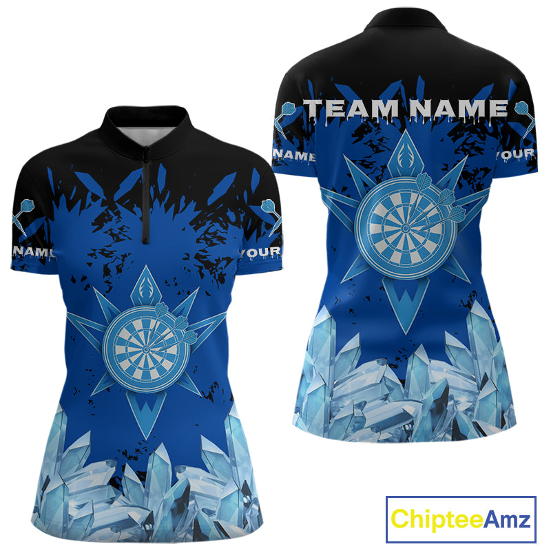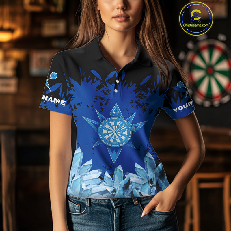 Funny Ice Pattern & Blue Dartboard Darts Team Shirt For Women - Customizable Name NYN0386