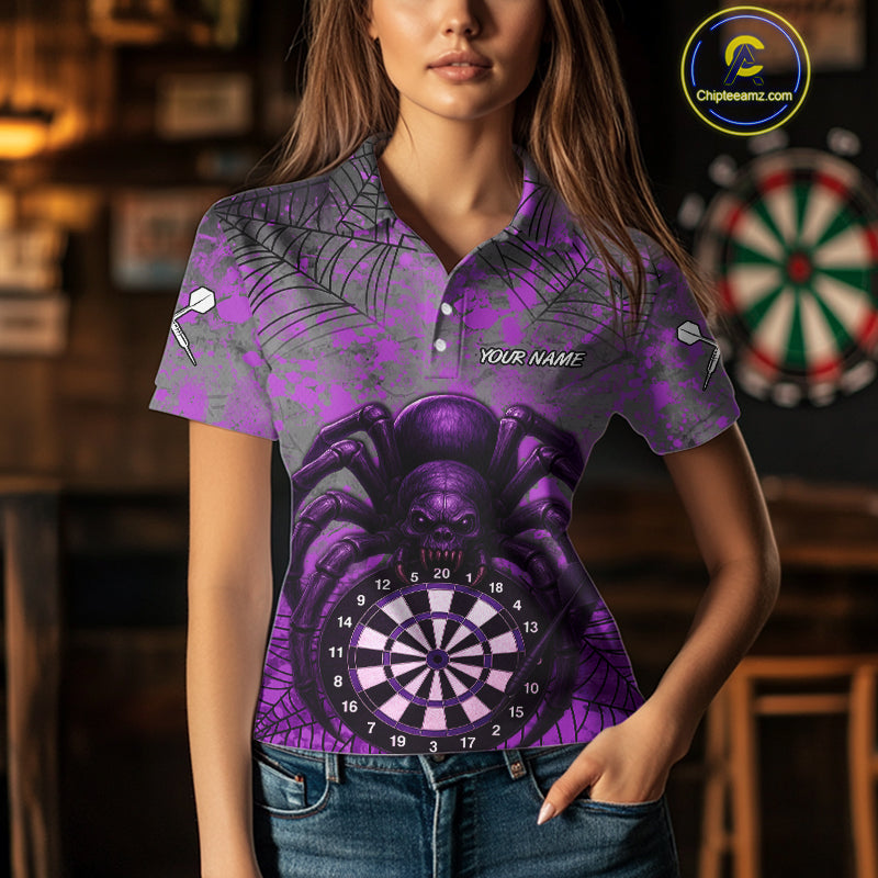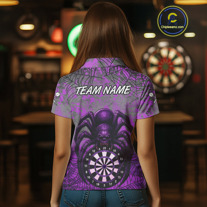 Mauve Skull Spider & Dartboard Darts Shirt For Women - Custom Name & Team Option NYN0394