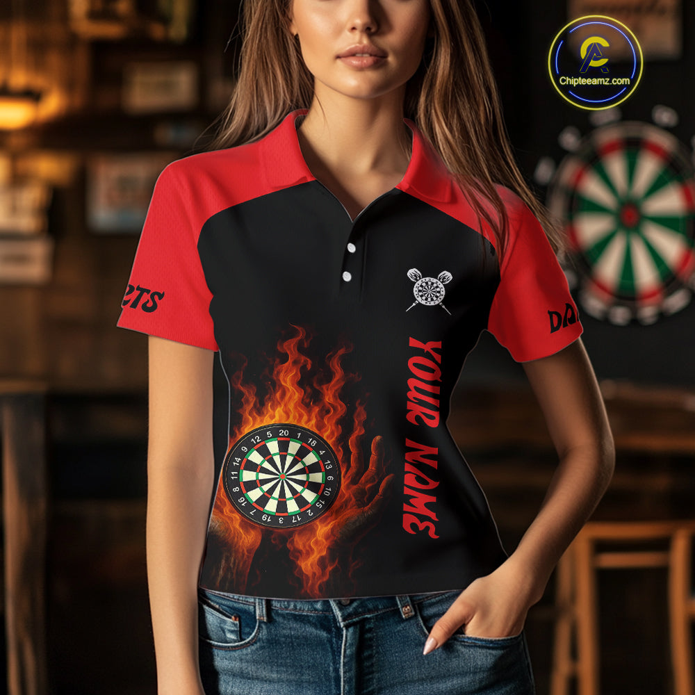 Women's Flaming Darts Shirt - Custom Name & Team Fire Dartboard Shirt For Players NYN0408