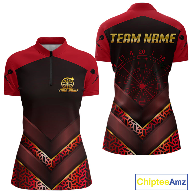 Black & Red Geometric Women's Dart Shirt - Custom Name Shirt For Dart Players NYN0411