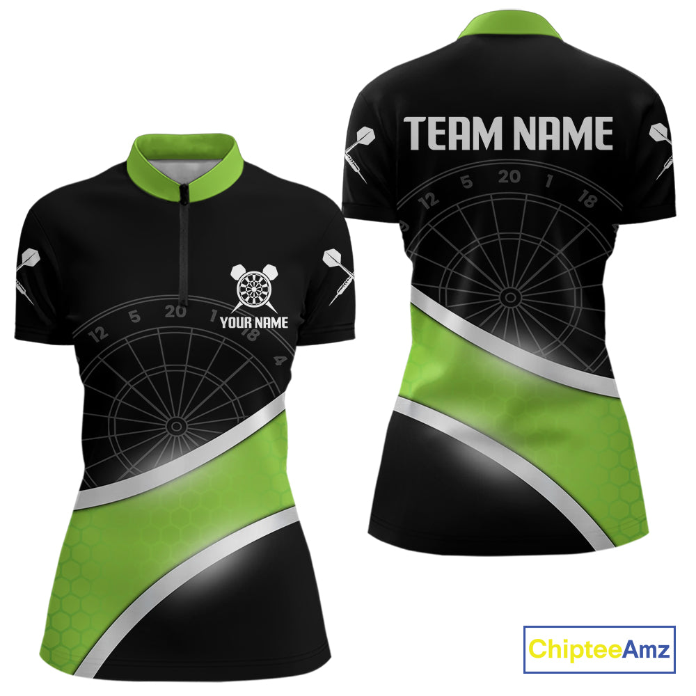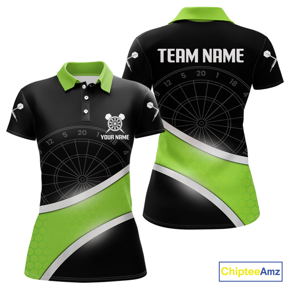 Green Halftone Pattern Dartboard Women's Darts Shirt - Custom Name For Dart Players NYN0412