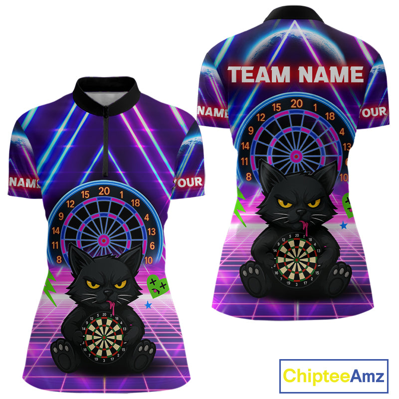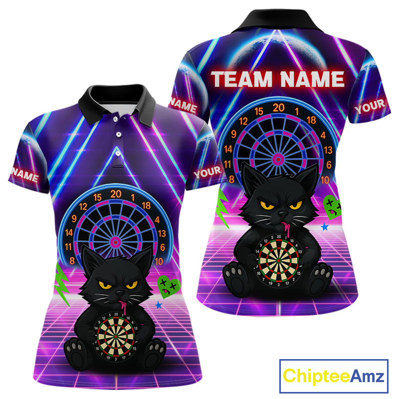 Dark Cat & Neon Electric Women's Darts Shirt - Custom Name For Dart Players NYN0416