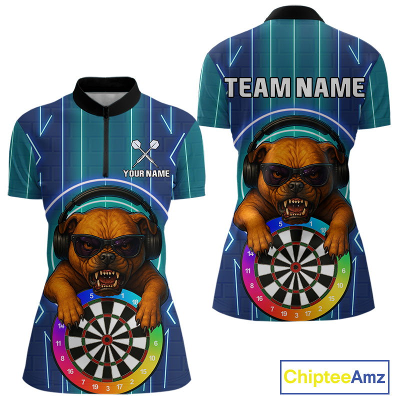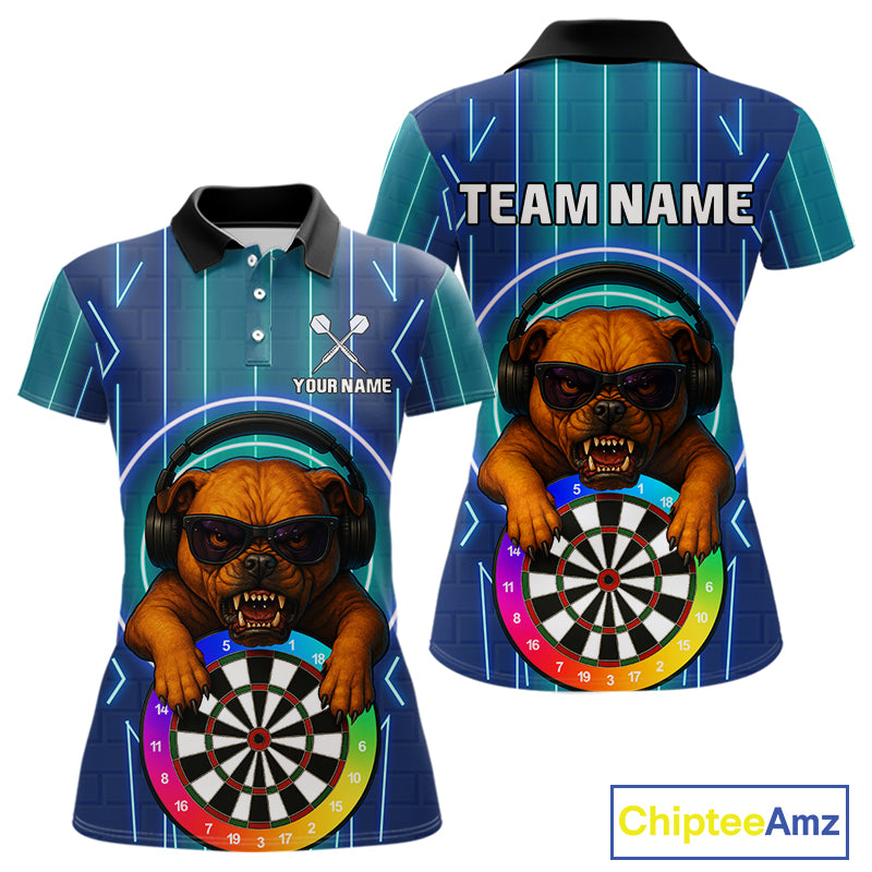 Darts & Cool Bulldog Tech Neon Women's Darts Shirt - Custom Name For Dart Players NYN0418