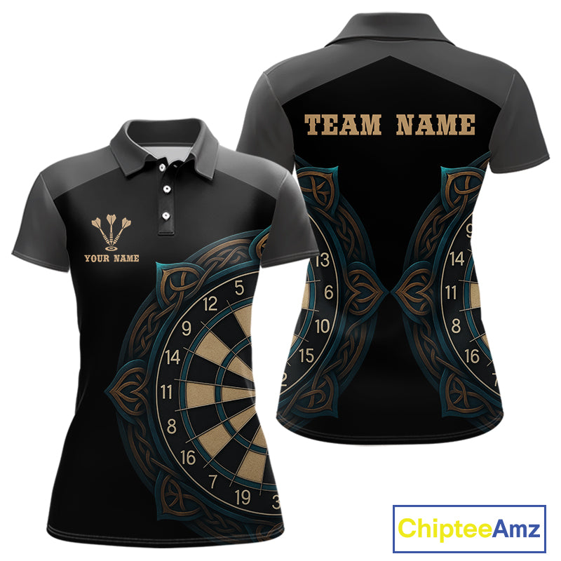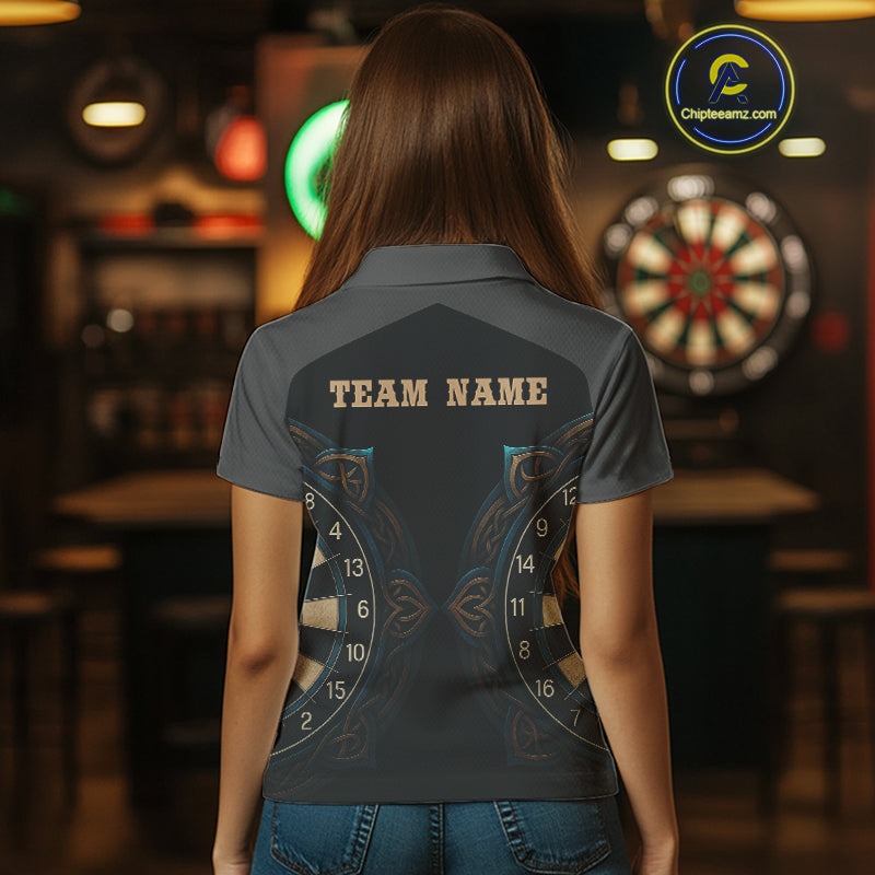 Vintage Blue Gold Celtic Dartboard Women's Darts Shirt - Custom Name For Players NYN0424