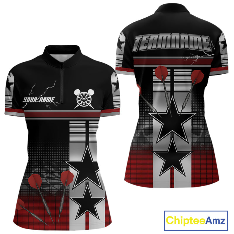 Patriotic Star & Darts Custom Women's Darts Shirt - Black & Red Jersey For Players NYN0451