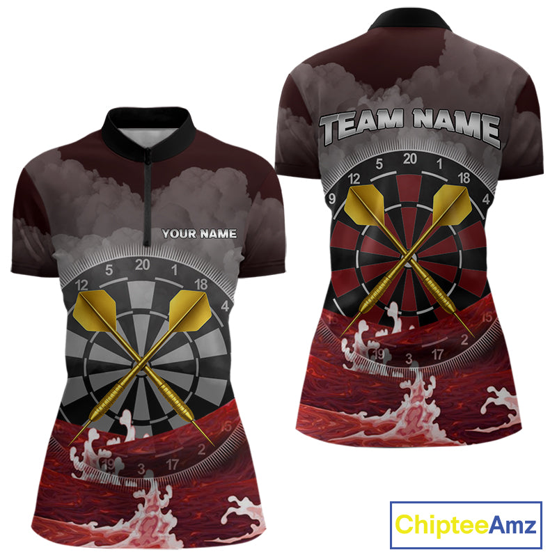 Scarlet Ocean With Golden Arrows - Women's Darts Team Shirt - Custom Name For Players NYN0492