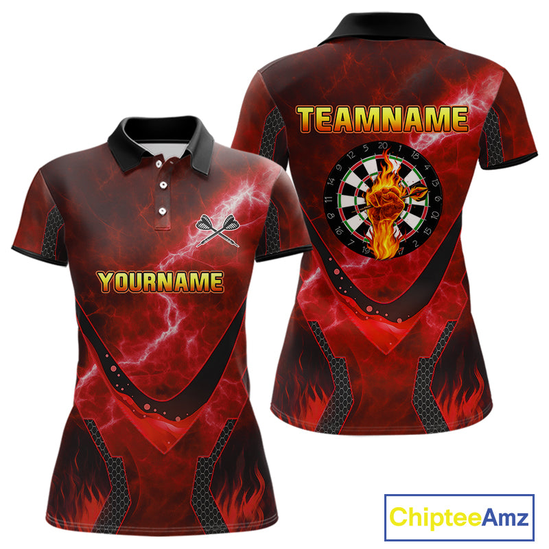 Lightning Red Flame Hand & Darts Women's Darts Shirt - Custom Name For Players NYN0543