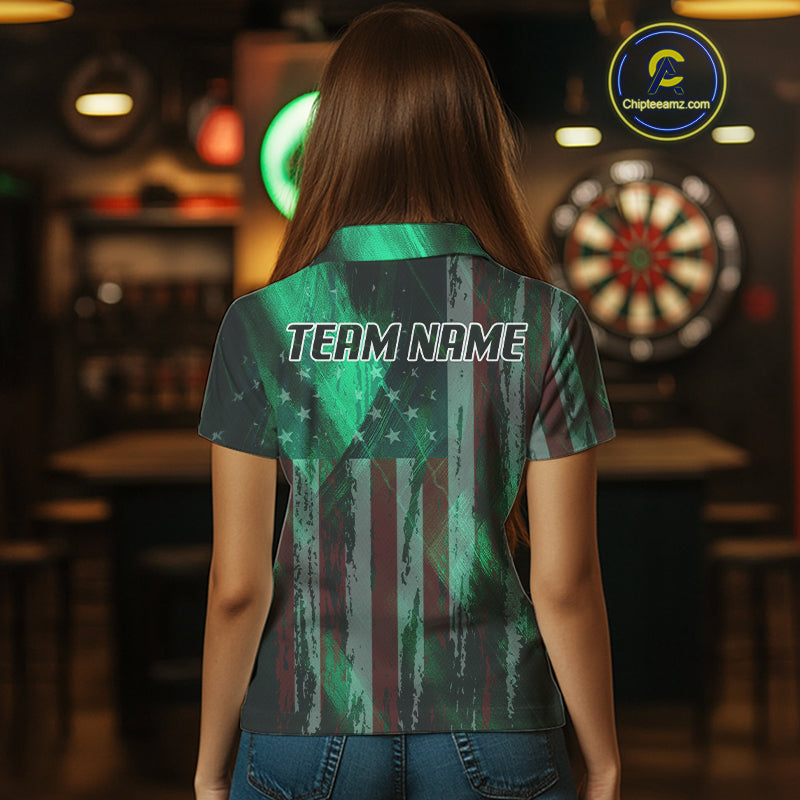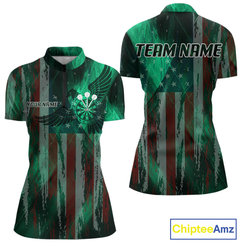 American Flag Eagle Dartboard Women's Darts Shirt Custom Name & Team | Opt1 - Green NYN0659