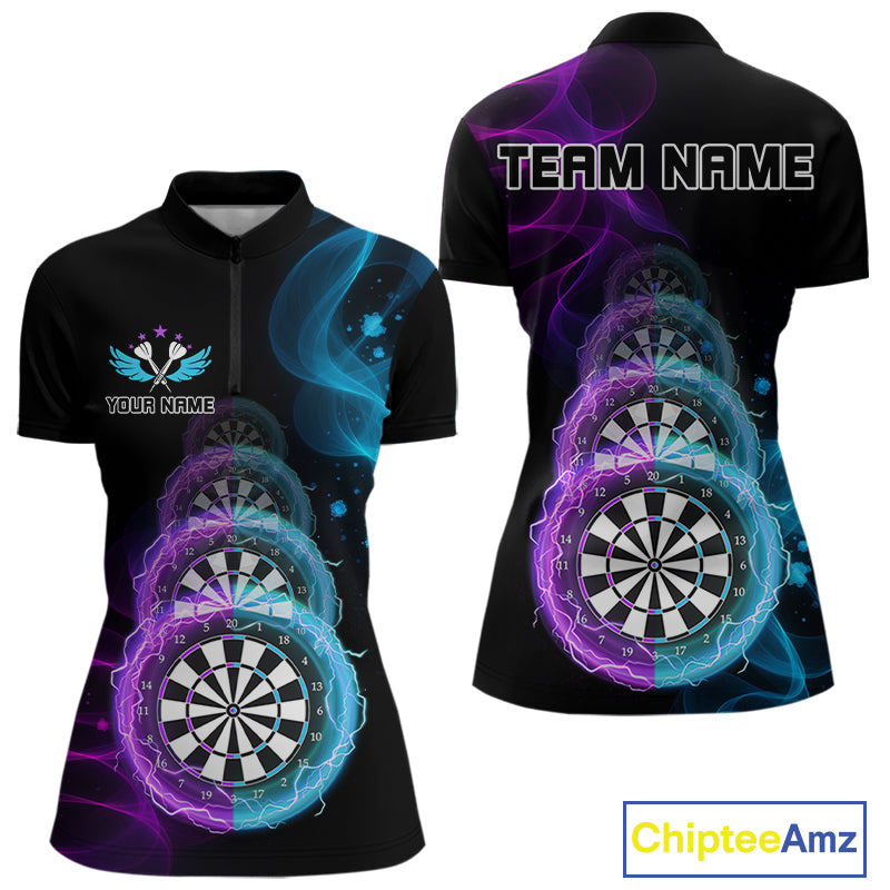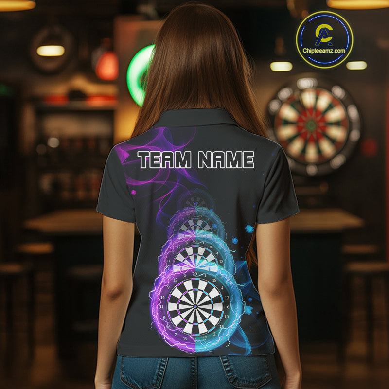 Smoke Thunder Dartboards Women's Darts Shirt Custom Name & Team | Opt1 - Purple Turquoise NYN0662