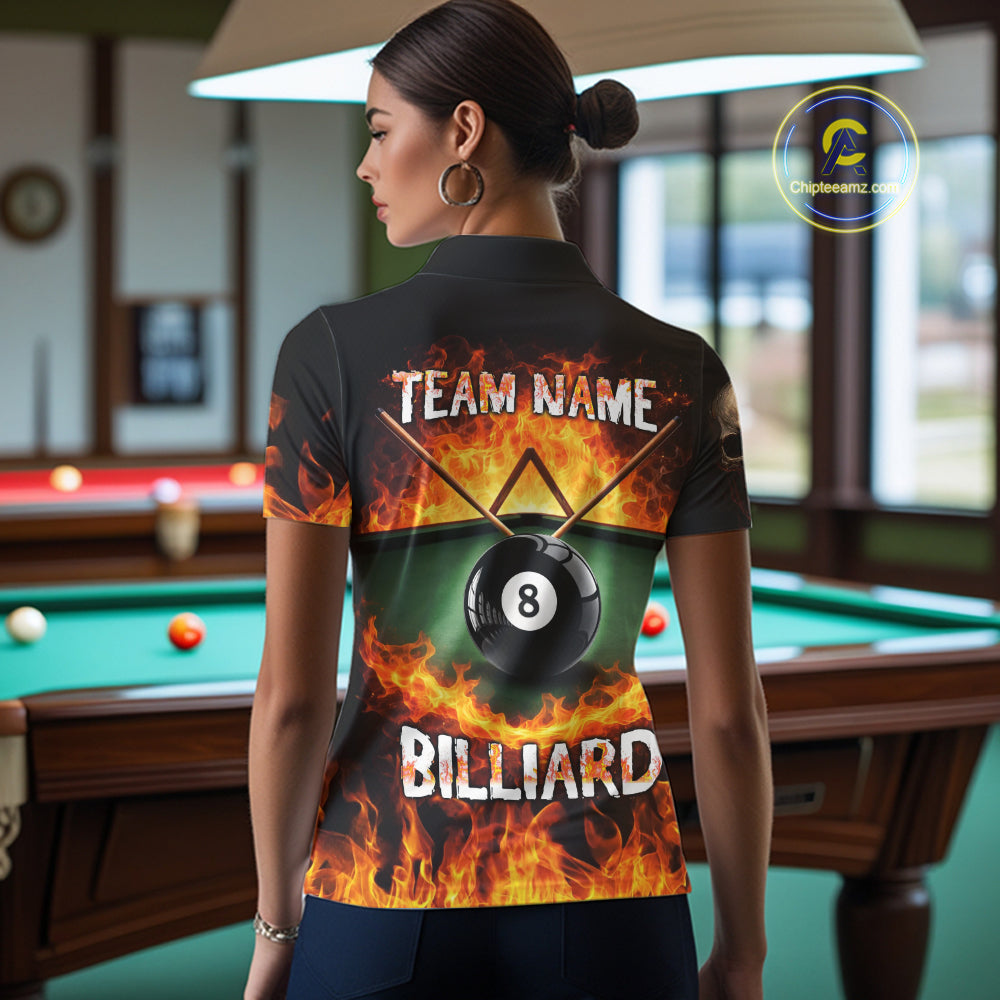 Fire Flame Pool 8 Ball Skull Billiard Shirts For Women Custom Billiard League Jerseys | Red NYN2286
