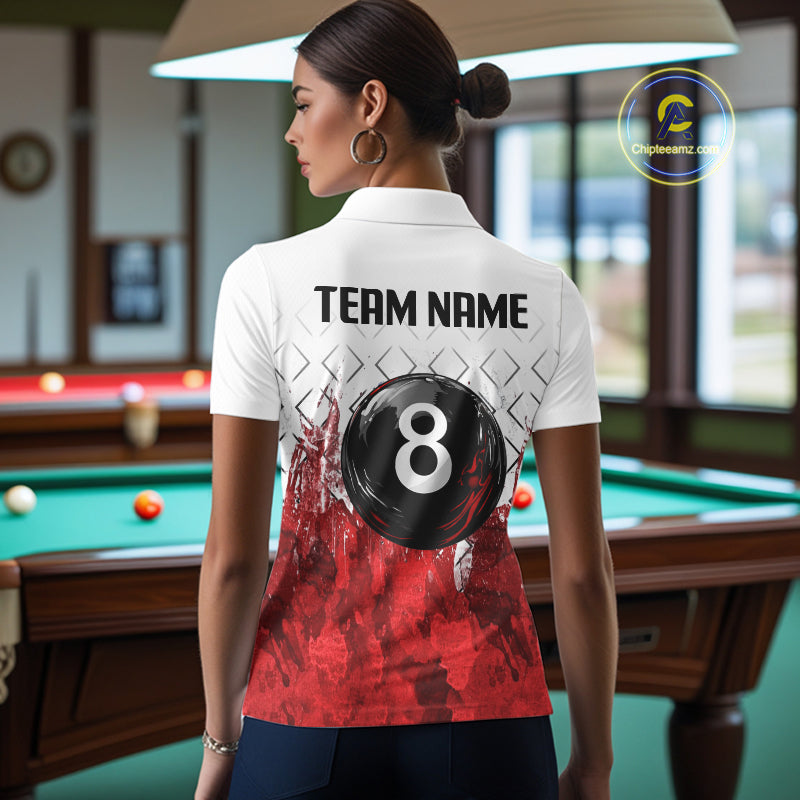 Red Splatter Paint 8 Ball Billiard League Shirts For Women Custom Name Billiard Team Jerseys NYN2287