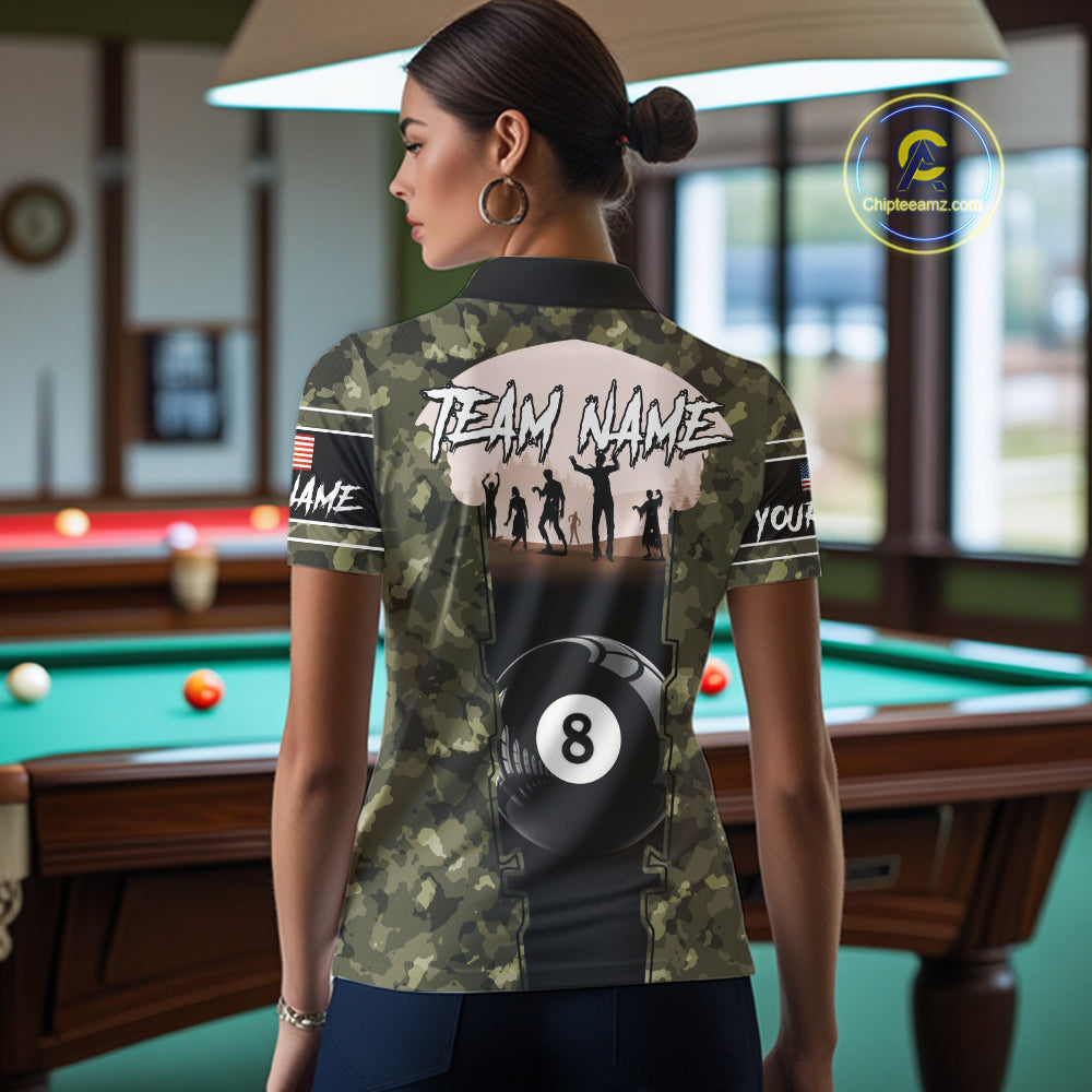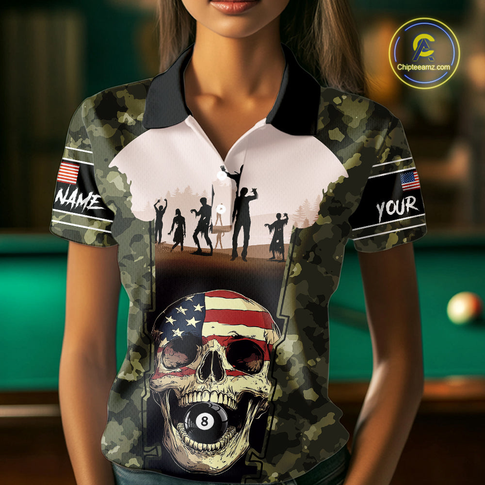 US Flag Skull Patriotic Billiard Shirts For Women Custom Camouflage 8 Ball Billiard Jerseys NYN2292
