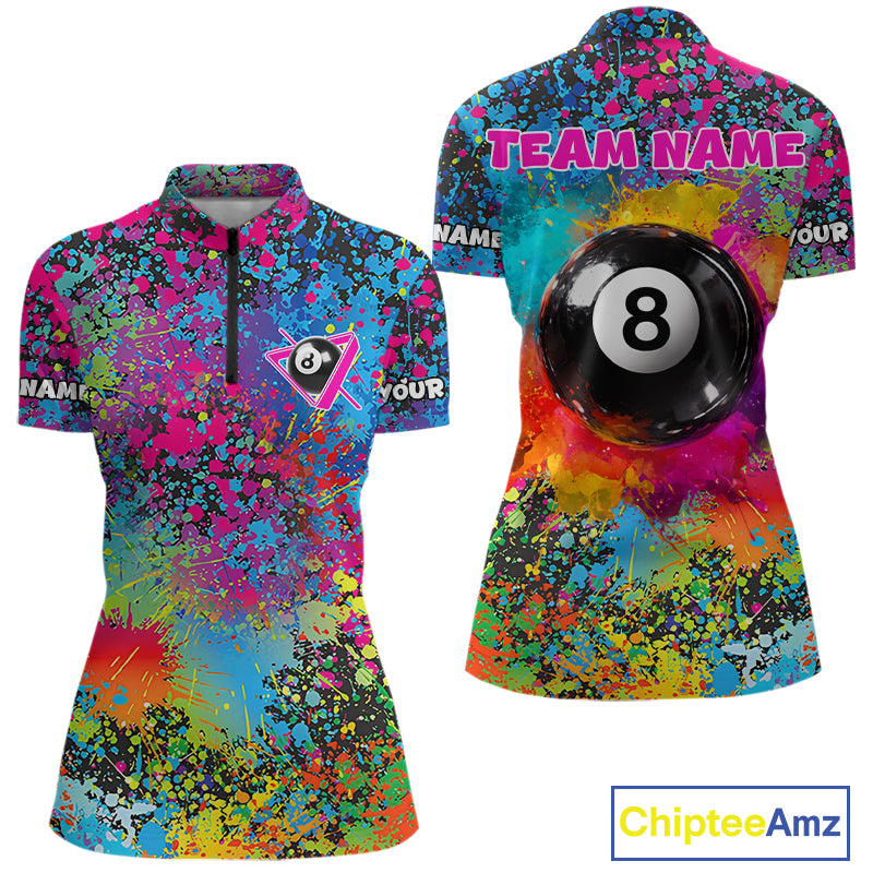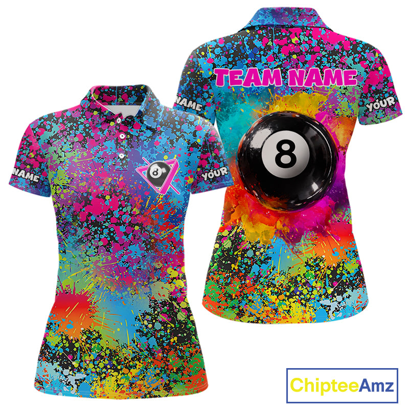 Colorful Splatter 8 Ball Pool Billiard Shirts For Women Custom Name Billiard Team Jerseys NYN2294