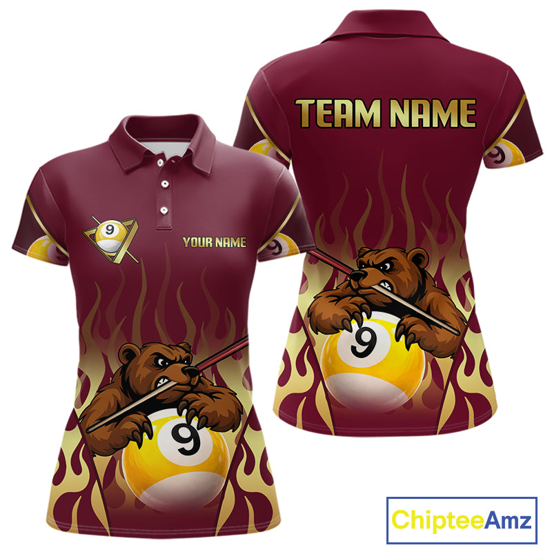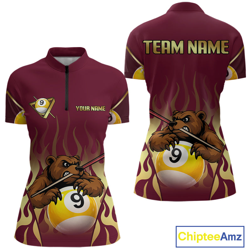 Bear & Pool 9 Ball Funny Billiard Shirts For Women Custom Name Billiard Team Jerseys NYN2296