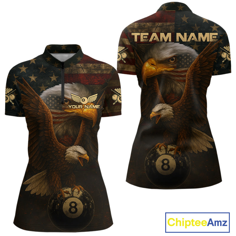 US Flag Eagle Retro Patriotic Billiard Shirts For Women Custom Pool 8 Ball Billiard Jerseys NYN2298