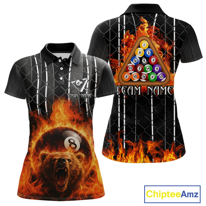 Red Flaming 8 Ball Billiard League Shirts For Women Custom Funny Bear Billiard Team Jerseys NYN2307