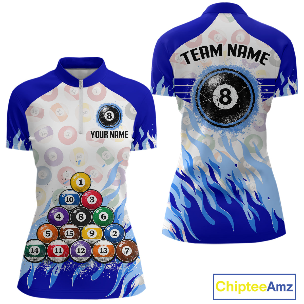 Blue Pool Billiard Balls League Jerseys For Women Custom Grunge Ball 8 Billiard Team Jersey NYN2316