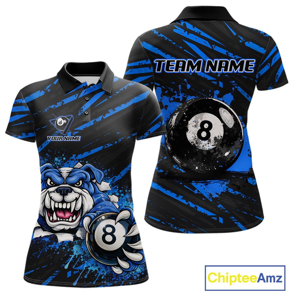 Blue Splatter Ball 8 Billiard Jerseys For Women Custom Funny Bulldog Billiard Team Jersey NYN2319
