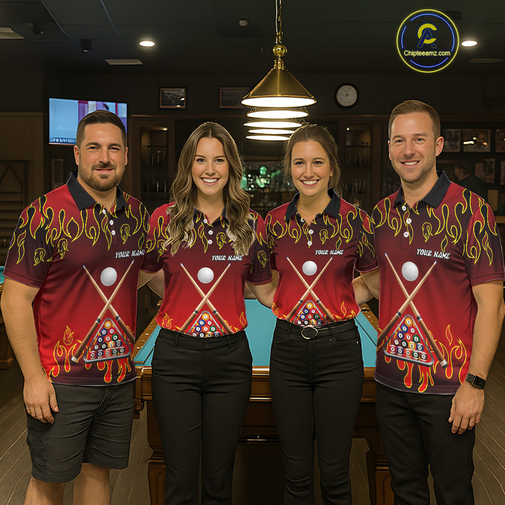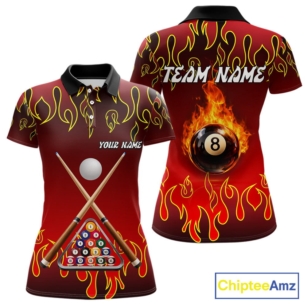 Custom Fire Flame 8 Ball Women's Billiard Shirts Personalized Billiard Attire Gifts | Red NYN2321