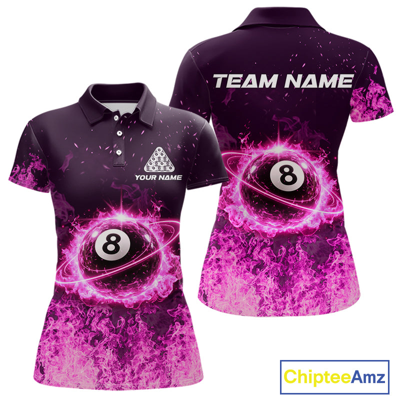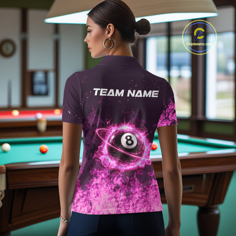 Custom Pink Flaming 8 Ball Light Women's Billiard Shirts Personalized Billiard Attire Gifts NYN2325