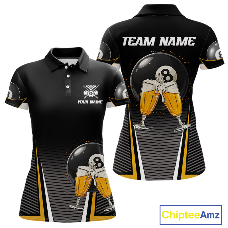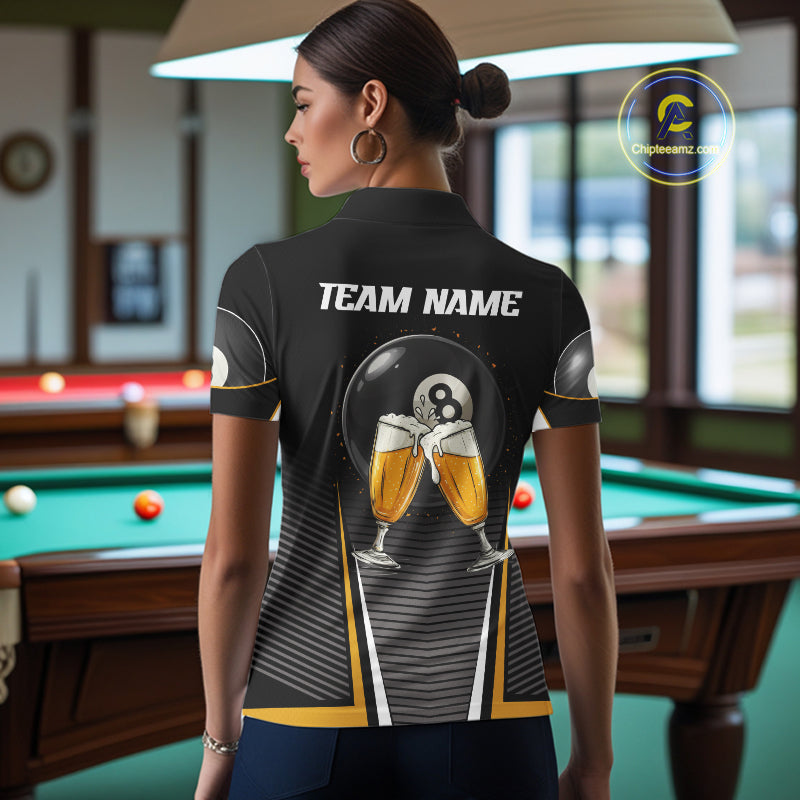 Custom Funny Cheer Beer & 8 Ball Women's Billiard Shirts Personalized Billiard Apparel Gifts NYN2326