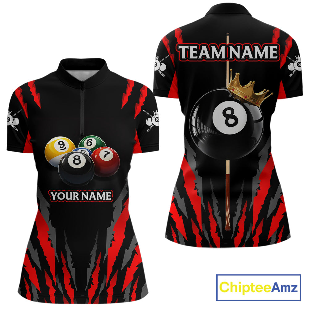 Black & Red Women's Billiard Ball Shirts Personalized Crown 8 Ball Billiard Team Attire NYN2330
