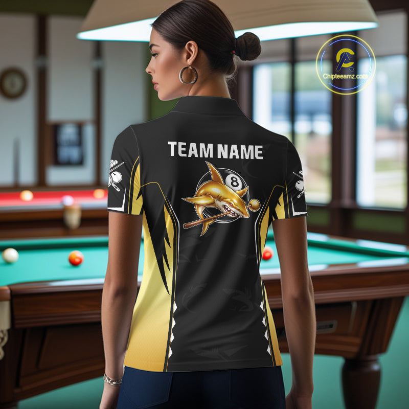 Funny Gold Shark Ball 8 & Cue Billiard Shirts For Women Personalized Billiard Attire Gifts NYN2341